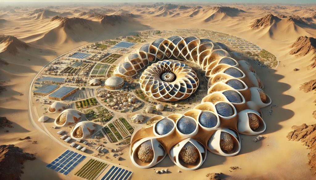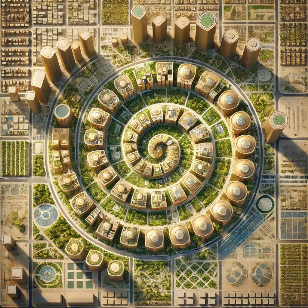 ✔ Uses spiral-based zoning to maximize walkability, resource efficiency, and sustainability.