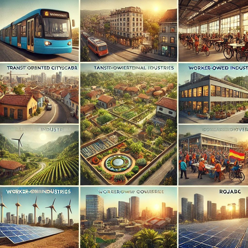 Fibonacci Spiral Cities adopt circular economies, ensuring localized production, cooperative ownership, and waste-free systems.