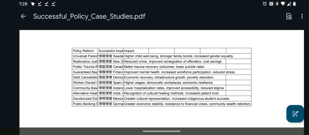 A sustainable, trauma-informed, and equitable society is within reach. This brochure provides a brief outline of key policies, a roadmap to implementation, and a timeline for systemic change. These reforms will address economic justice, participatory democracy, decolonized social systems, and mental health governance.