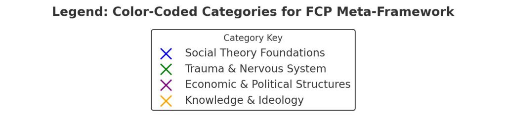 Each of these works connects through FCP’s meta-framework, which integrates Functionalism, Conflict Theory, Trauma Theory, and Restorative Governance. The following connections emerge: