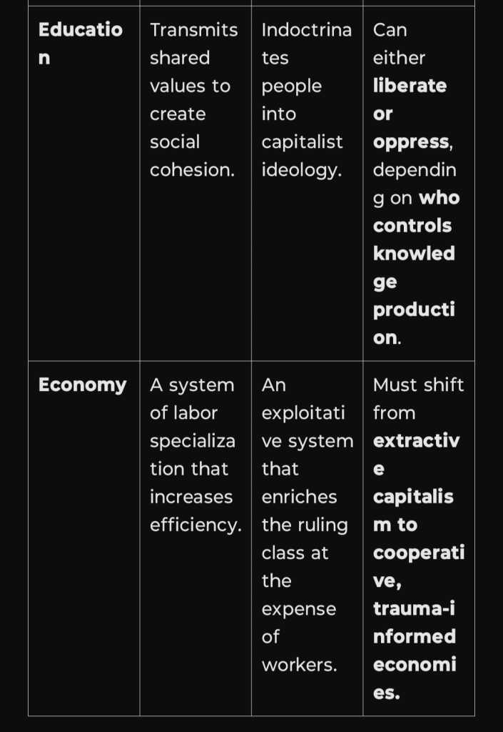 1. It deconstructs coercive systems (capitalism, ableism, adversarial governance).