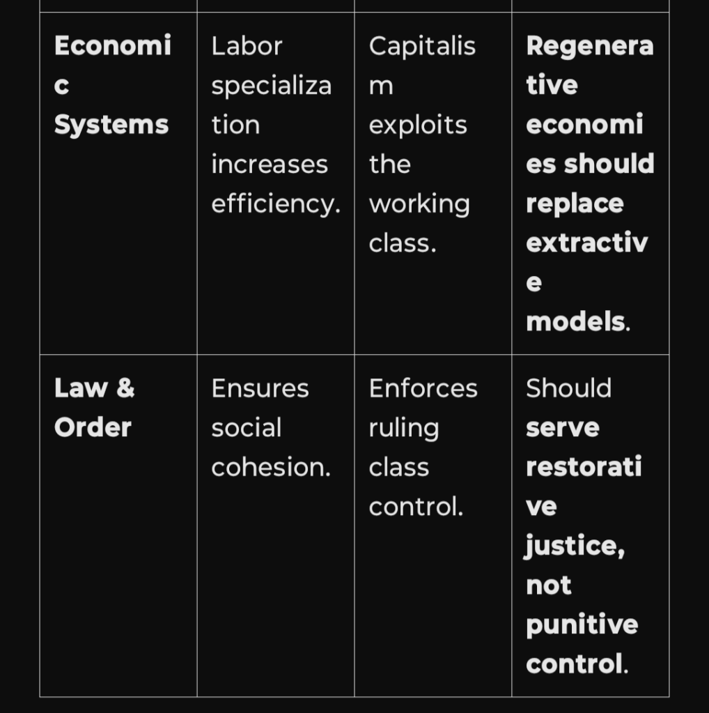 2. It provides trauma-informed alternatives (restorative governance, cooperative economics, universal accessibility).