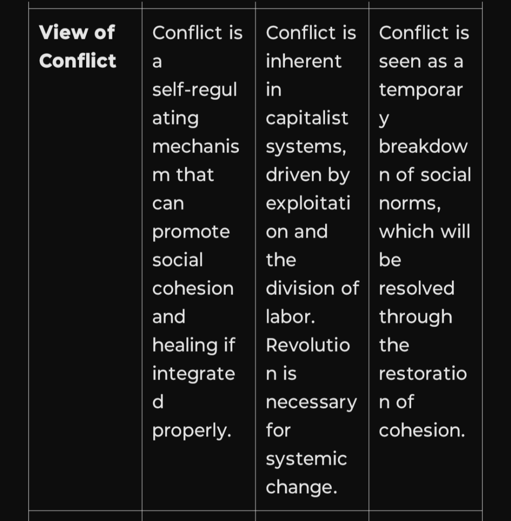 Outline of Functional Conflict Perspective (FCP): A Comparative Table of the Functional Conflict Perspective (FCP), Marx, and Durkheim