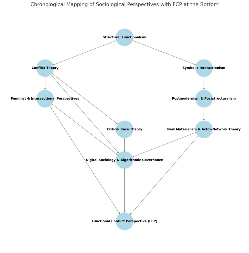 FCP does not reject previous sociological theories but synthesizes them into a unified framework that prioritizes adaptive, relational, trauma-informed conflict resolution. Each rule of FCP is logically necessitated by the insights of functionalism, conflict theory, symbolic interactionism, postmodernism, intersectionality, critical race theory, new materialism, and digital sociology—meaning this framework is not just a preference but an inevitable evolution of sociological thought.