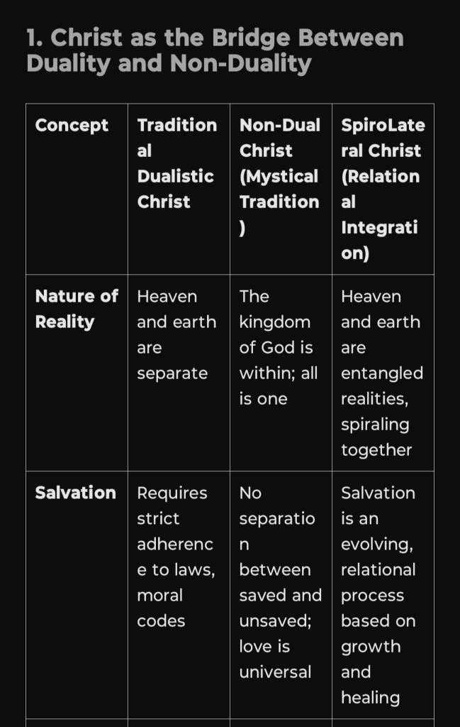 Christ, as both a historical and theological figure, embodies aspects of both structured dualism and emergent monistic integration, making Him a key SpiroLateral figure in bridging opposites.