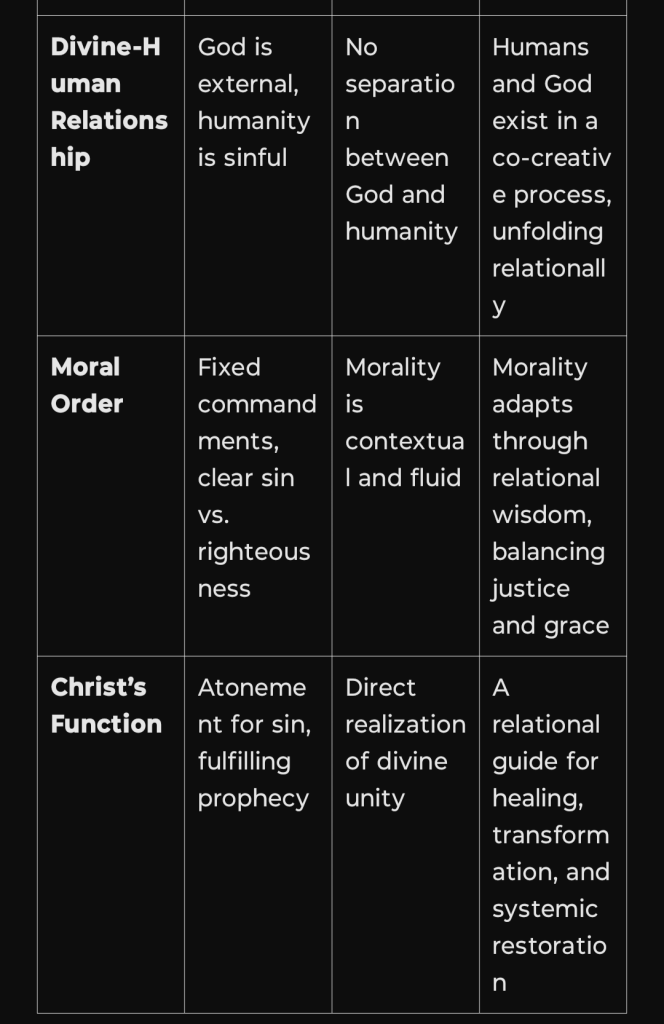 Traditional Christianity (Dualism) → Christ is often framed as separate from humanity, a divine figure distinct from the material world.
