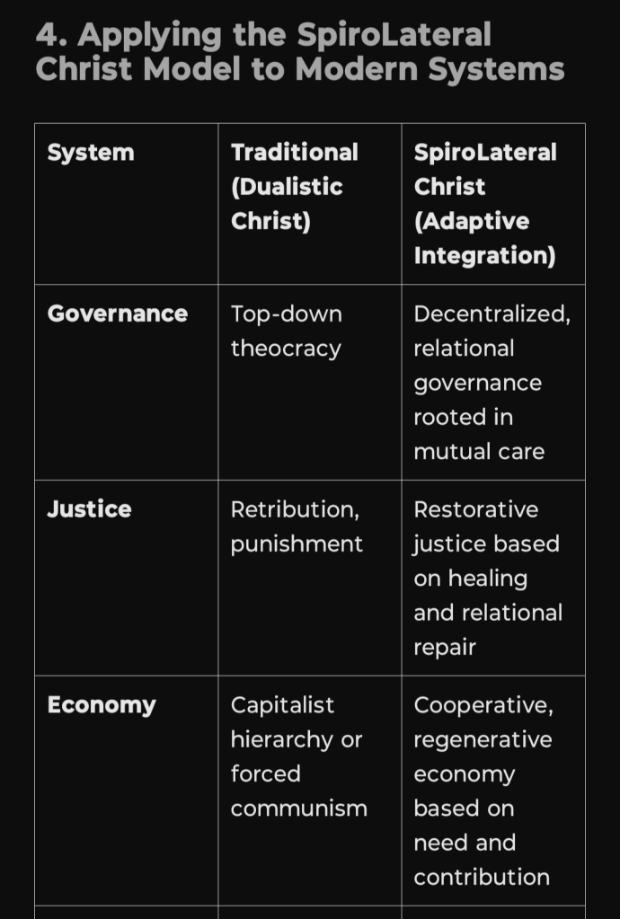SpiroLateral Christ (Adaptive Bridge) → Christ functions as a dynamic link between structured moral order and relational, adaptive love, integrating hierarchy and fluidity.