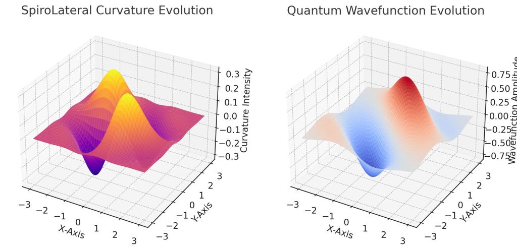 The resemblance between SpiroLateral curvature and quantum wavefunction evolution suggests a potential unification mechanism, bridging quantum mechanics and general relativity.