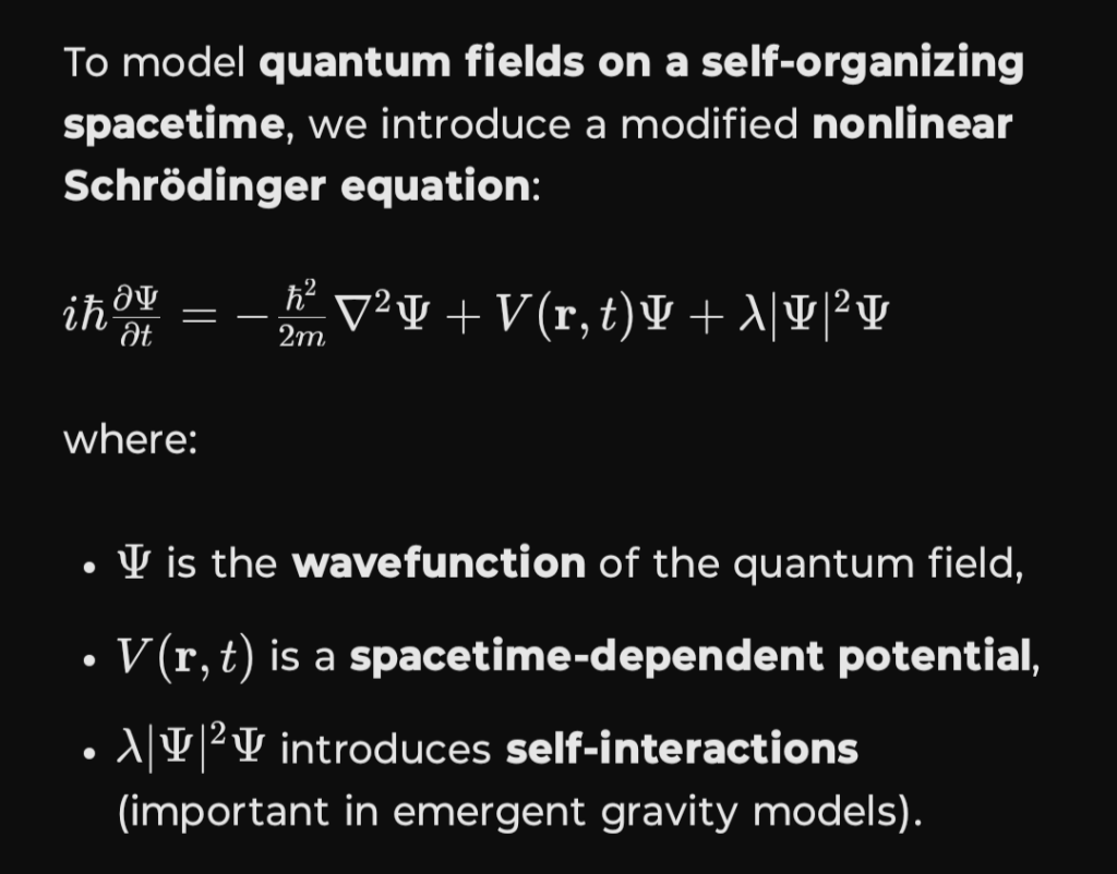 To model quantum fields on a self-organizing spacetime, we introduce a modified nonlinear Schrödinger equation: