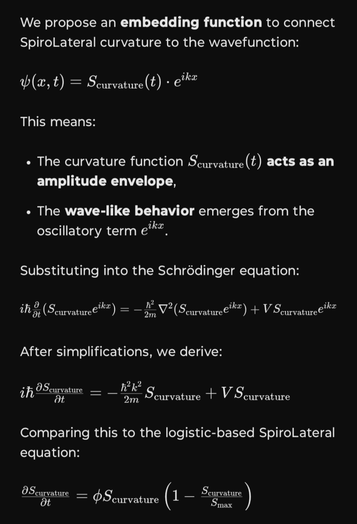 To determine whether the SpiroLateral curvature function and the quantum wavefunction evolution overlap mathematically, let’s compare their structures and check for possible unification.